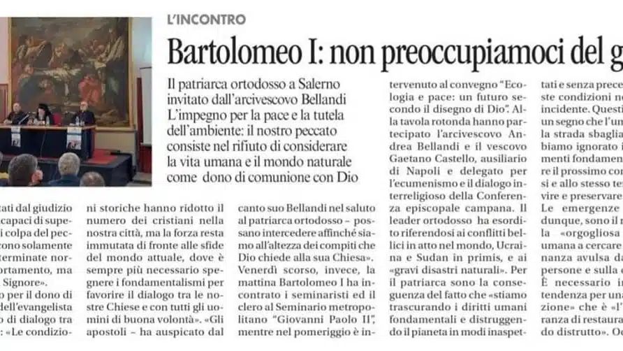 Omelia di sua Santità k.k. Bartolomeo Arcivescovo di Costantinopoli – Nuova Roma e Patriarca Ecumenico durante la Liturgia eucaristica nella Cattedrale di Salerno in onore dell’Apostolo ed Evangelista Matteo