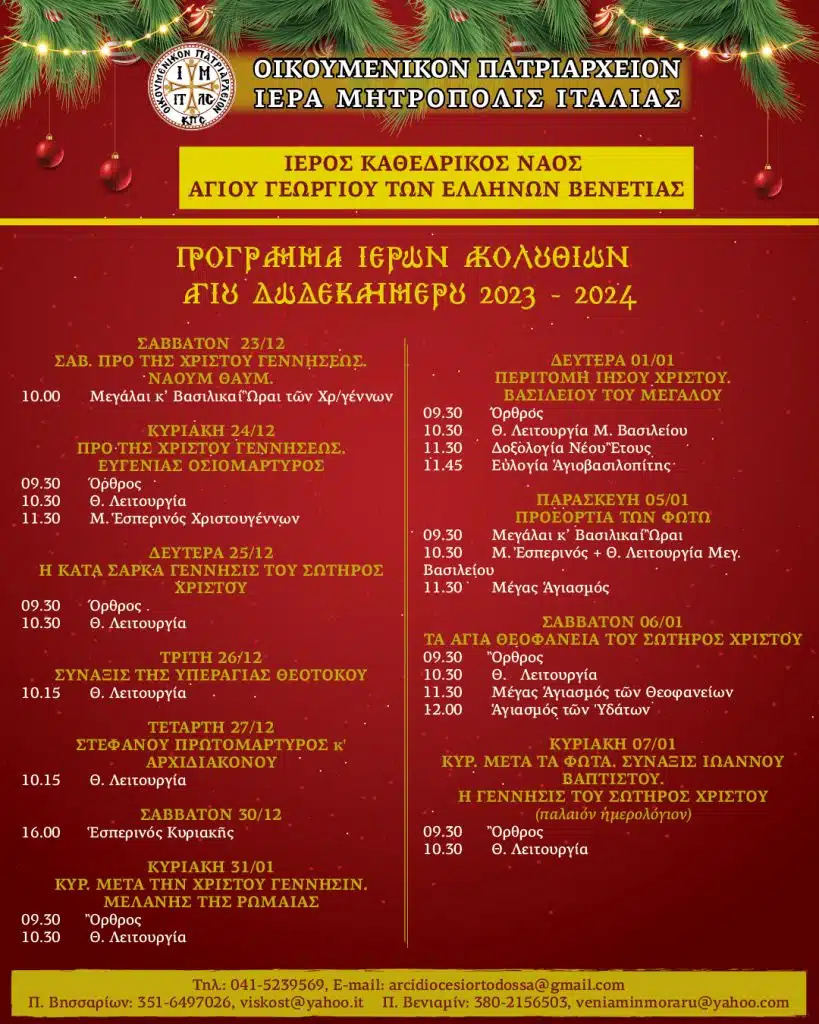 Δεκ 19, 2023 | Chiesa Cattedrale di San Giorgio dei Greci – Venezia, από τις Ενορίες
