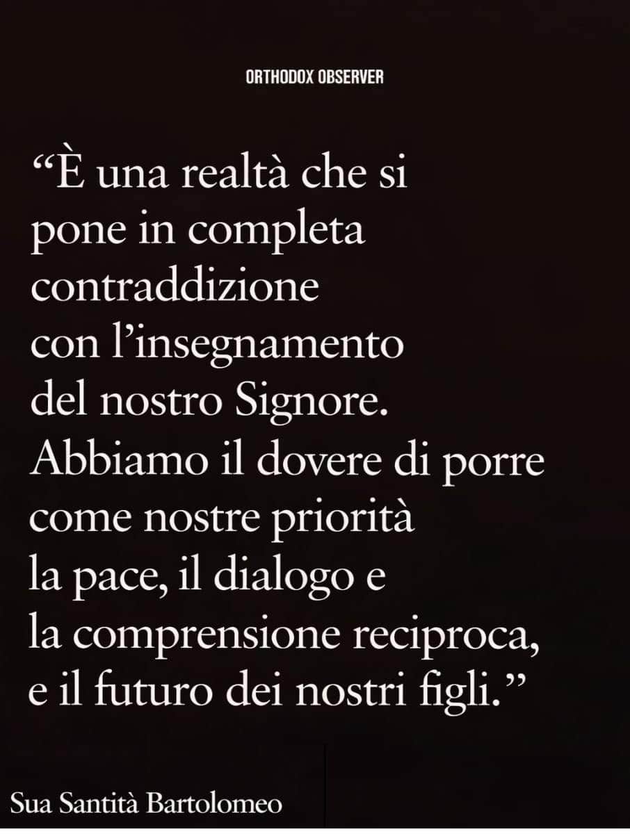 Il Patriarca Ecumenico Bartolomeo, con una parola diretta, teologicamente fondata e profondamente umana, ricorda che ogni guerra ĆØ una sconfitta per lāumanitĆ e che nessuna forma di violenza può essere identificata con la fede. La strumentalizzazione dellāOrtodossia e lāuso della propaganda come mezzo di dominio snaturano il Vangelo stesso. La voce del Patriarcato di Costantinopoli rimane saldamente orientata alla pace, al dialogo e al rispetto della persona umana come immagine di Dio ā senza paura, senza compromessi, senza silenzio.