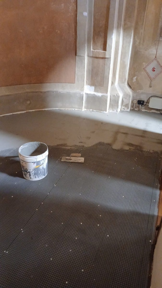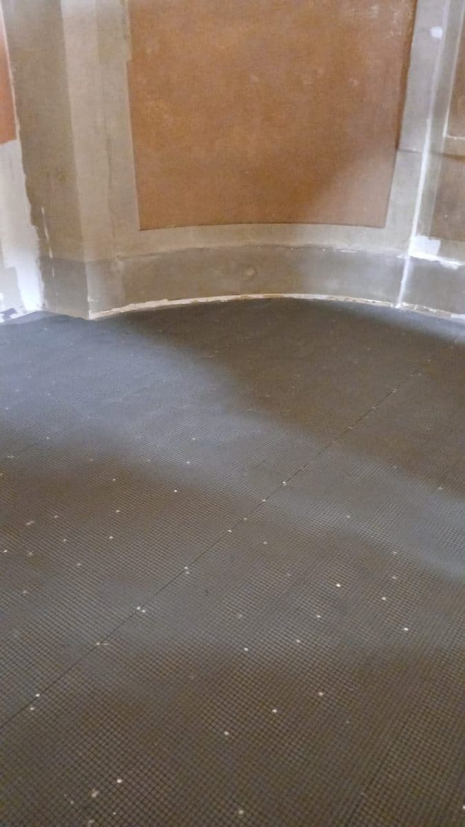 Questo si è reso necessario in quanto il pavimento in legno risultava deteriorato in molte parti, pericoloso per quanto riguarda la possibilità di incendi e ormai sporco dalla cera e dall’olio.