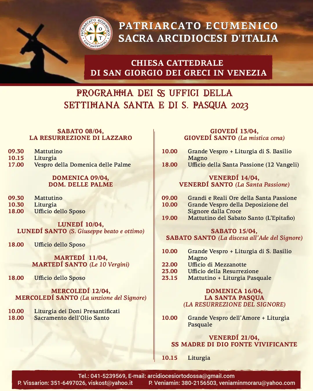 Apr 7, 2023 | Programma della Grande e Santa Settimana e della Pasqua 2023